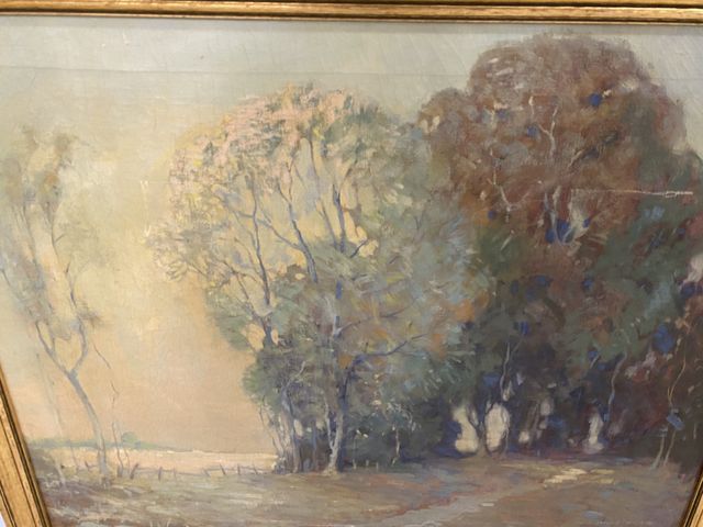 Antique Landscape Painting on Canvas, age crackling, oil painting, unsigned, gold gilt framed, 27"h., 33"w. Antique Landscape Painting on Canvas, age crackling, oil painting, unsigned, gold gilt framed, 27"h., 33"w.