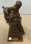 Fredrick Remington Reproduction Statue, cast metal, wood plaque, 15"h. Fredrick Remington Reproduction Statue, cast metal, wood plaque, 15"h.