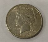 1992 Peace Liberty Silver Coin, S mint mark, circulated, good condition. 1992 Peace Liberty Silver Coin, S mint mark, circulated, good condition.