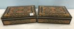 Pair of Syrian Inlaid Boxes, souks of Damasus, mosaic inlay, felt lining, new, 3"h., 9"w. Pair of Syrian Inlaid Boxes, souks of Damasus, mosaic inlay, felt lining, new, 3"h., 9"w.