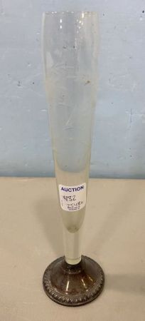 Weighted Sterling Glass Flute, etched glass, 9"h. Weighted Sterling Glass Flute, etched glass, 9"h.