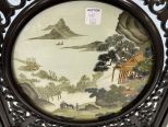 445 Chinese Hand Embroidered Silk Landscape Double Sided Convex Glass Table Screen