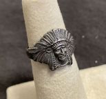 453 Vintage Ring Marked Sterling with Native American Chief Head Dress