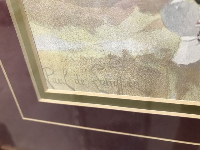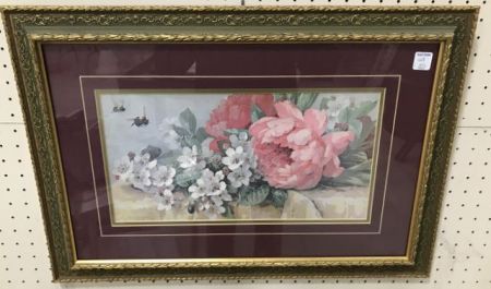 Paul De Longpre Flower print, matted, framed, French artist, frame is 18"h., 26"w. Paul De Longpre Flower print, matted, framed, French artist, frame is 18"h., 26"w.