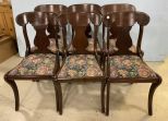 Six Mahogany Duncan Phyfe Style Dining Chairs, rose pattern seats, 35"h. Six Mahogany Duncan Phyfe Style Dining Chairs, rose pattern seats, 35"h.