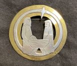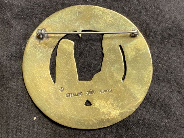 Unique Native Scene Pin, Marked "JEC" Sterling and Brass, hand crafted. Unique Native Scene Pin, Marked "JEC" Sterling and Brass, hand crafted.