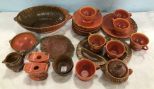 Set of Stangl Stoneware Pottery, compote, plates, cups, divided platter, candle holders, creamer, sugar, bowls. Set of Stangl Stoneware Pottery, compote, plates, cups, divided platter, candle holders, creamer, sugar, bowls.