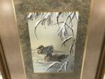 Small Oriental Painted Silk Framed Tapestry, of ducks, matted, framed, 11"h., 9"w. Small Oriental Painted Silk Framed Tapestry, of ducks, matted, framed, 11"h., 9"w.