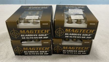 Magtech Guardian Gold 32 Auto 65 grain JHP, 4 boxes, 80 cartridges. Magtech Guardian Gold 32 Auto 65 grain JHP, 4 boxes, 80 cartridges.