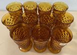 11 American White Hall Amber Drinking Glasses, cube pattern, good condition, 6"h. 11 American White Hall Amber Drinking Glasses, cube pattern, good condition, 6"h.