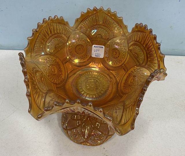 Vintage Carnival Compote, two piece, crimped rimmed, 9"h. ,10"dia. Vintage Carnival Compote, two piece, crimped rimmed, 9"h. ,10"dia.