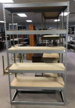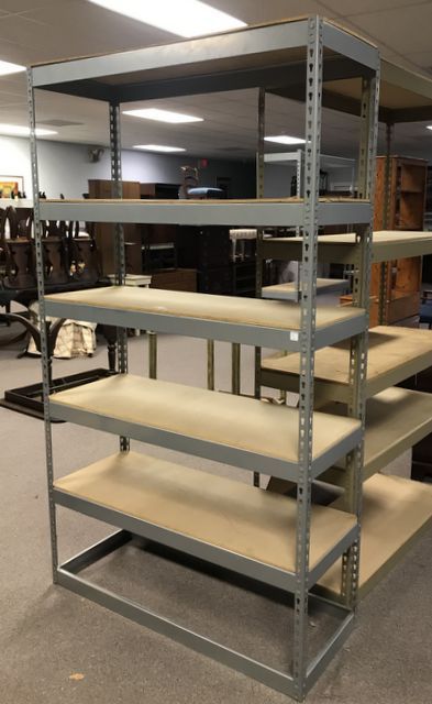 Industrial Metal Storage Shelves, metal with cardboard shelves, adjustable shelves, used condition, 7'h., 48"w., 18"d. Industrial Metal Storage Shelves, metal with cardboard shelves, adjustable shelves, used condition, 7'h., 48"w., 18"d.