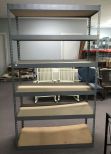 Industrial Metal Storage Shelves, metal with cardboard shelves, adjustable shelves, used condition, 7'h., 48"w., 18"d. Industrial Metal Storage Shelves, metal with cardboard shelves, adjustable shelves, used condition, 7'h., 48"w., 18"d.