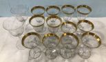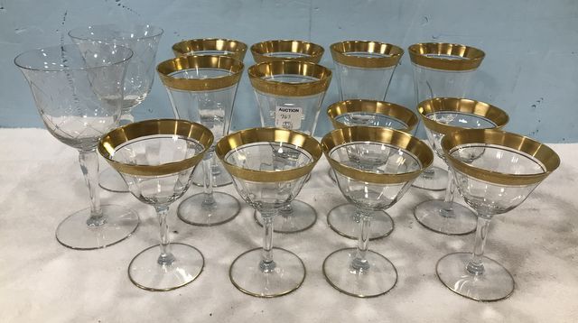 Fostoria Gold Rimmed Glass Stemware, 6 wine glasses, 6 goblets, good condition. Fostoria Gold Rimmed Glass Stemware, 6 wine glasses, 6 goblets, good condition.