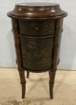 Ethan Allen Oriental Plant Stand, factory painted, bamboo style legs, single drawer, door with broken latch handle, good condition finish, 24"h., 13"dia. Ethan Allen Oriental Plant Stand, factory painted, bamboo style legs, single drawer, door with broken latch handle, good condition finish, 24"h., 13"dia.