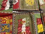 66 Antique (1890's-1910s) Tobacco Felts or Flannels, depicting flags of various nations, and sewn into 6 strips of 11 felts each. Individual felts measure approx 7" x 11". Very colorful, would make great quilt or wall hanging, dyes used during this period are not colorfast and will bleed if they get wet. 66 Antique (1890's-1910s) Tobacco Felts or Flannels, depicting flags of various nations, and sewn into 6 strips of 11 felts each. Individual felts measure approx 7" x 11". Very colorful, would make great quilt or wall hanging, dyes used during this period are not colorfast and will bleed if they get wet.