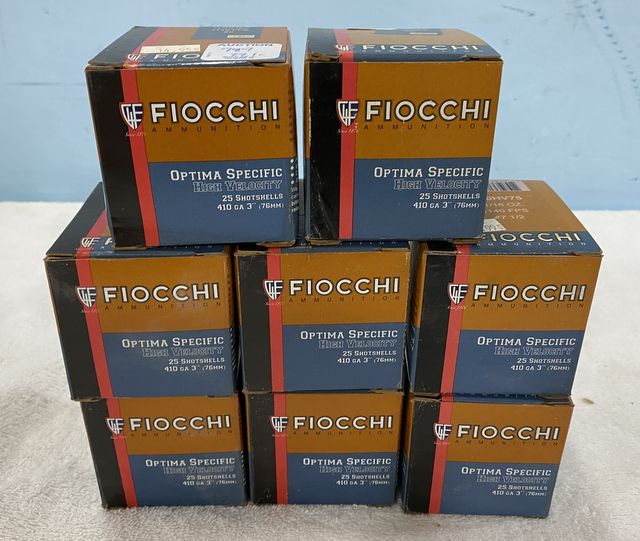 Fiocchi Optima Specific High Velocity 410 Gauge, 3", 8 boxes, 200 shells. Fiocchi Optima Specific High Velocity 410 Gauge, 3", 8 boxes, 200 shells.