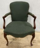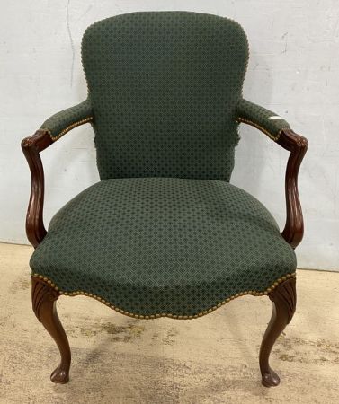 French Style Upholstered Arm Chair, cherry finish, tacked border, needs new upholstery, 34"h. French Style Upholstered Arm Chair, cherry finish, tacked border, needs new upholstery, 34"h.