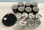 Group of Oriental Style Cups, Plates, and Containers, two container missing lids, two plates, 7 cups. Group of Oriental Style Cups, Plates, and Containers, two container missing lids, two plates, 7 cups.