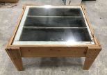 Hand Made square coffee table, window top with glass, shadow box style, 18"h., 30"w. Hand Made square coffee table, window top with glass, shadow box style, 18"h., 30"w.