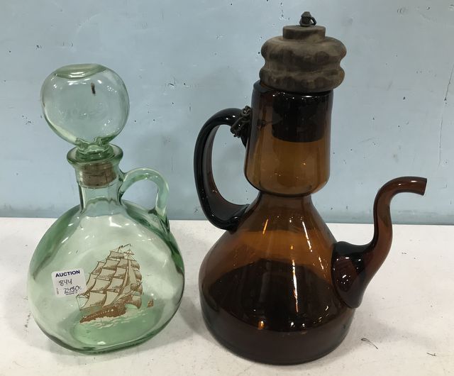 844 Vintage Amber Chiller Pitcher and Vintage 1849 Ship Decanter