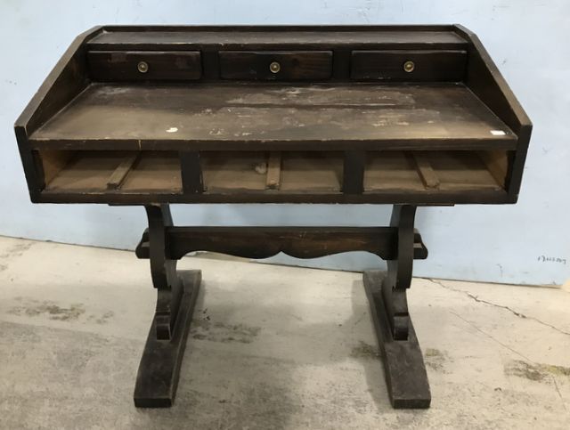 Vintage Primitive style work desk, project piece, missing front three drawers, has worn finish, 36"h., 42"w., 24"d. Vintage Primitive style work desk, project piece, missing front three drawers, has worn finish, 36"h., 42"w., 24"d.