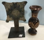 881 Carved Wood Vase and Rustic Decorative Plaque
