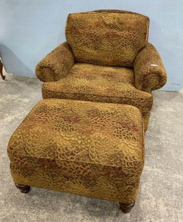 Upholstered Arm Chair with Ottoman, needs new upholstery. Upholstered Arm Chair with Ottoman, needs new upholstery.