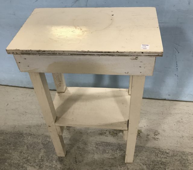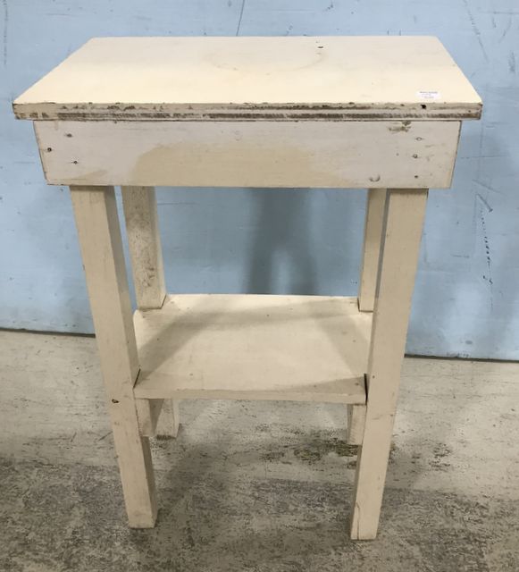 Hand Made White Painted Side Table, two tier, 30"h., 20"w. Hand Made White Painted Side Table, two tier, 30"h., 20"w.