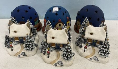 Thomas Kincade Christmas Lighted Decorations, three, and star candle globes. Thomas Kincade Christmas Lighted Decorations, three, and star candle globes.