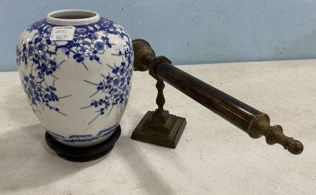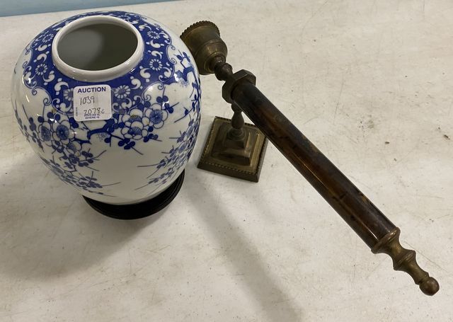 1039 Small Chinese Porcelain Vase and Brass Wall Candelabra