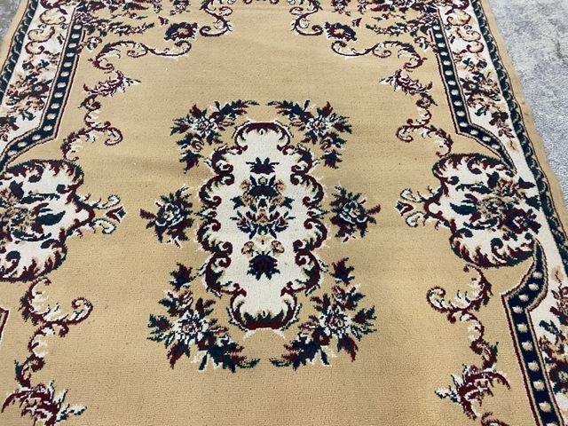 Birdian Collections Machine Made Area rug, tan with dark reds, needs cleaning, 5'3 x 7'5. Birdian Collections Machine Made Area rug, tan with dark reds, needs cleaning, 5'3 x 7'5.