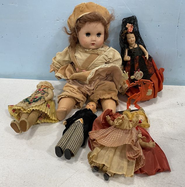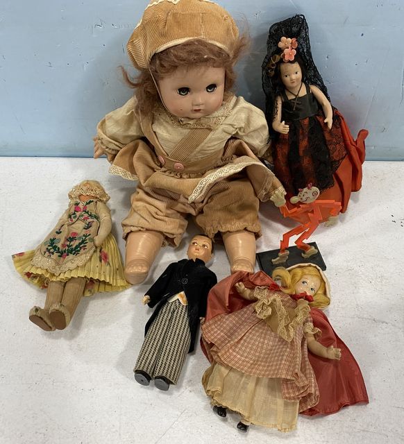 Group of Vintage Dolls, hand made clothes, age wear, 5 total. Group of Vintage Dolls, hand made clothes, age wear, 5 total.
