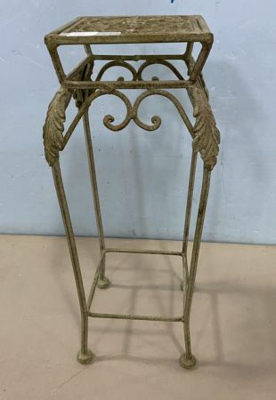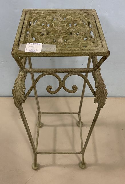 Modern Metal Small Stand, distressed style, square top, 18"h., 6"w. Modern Metal Small Stand, distressed style, square top, 18"h., 6"w.