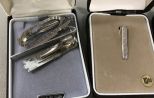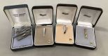Four Silver Plate tie clips, and sterling ruler clip. Four Silver Plate tie clips, and sterling ruler clip.