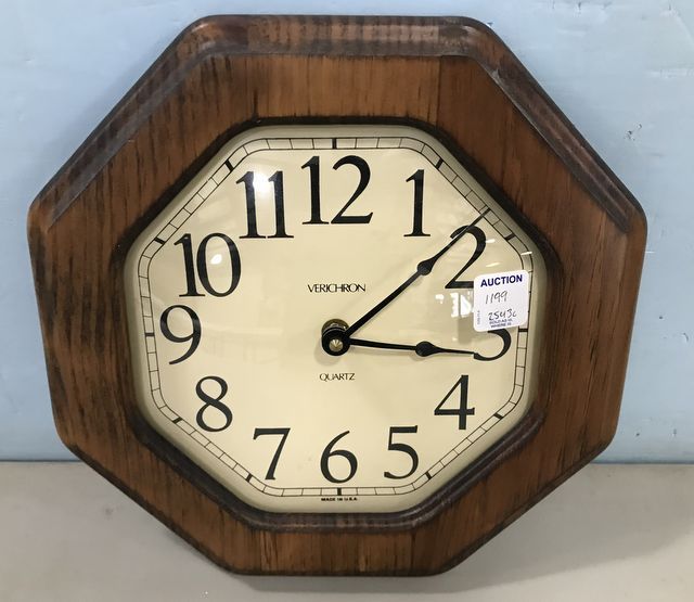 Verichron Octogen Wood Wall Clock, battery operated, 10". Verichron Octogen Wood Wall Clock, battery operated, 10".