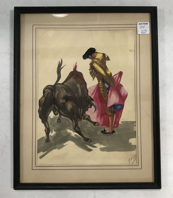 Hand Colored Bull Fighter Artwork, signed, matted, framed, 15"h., 12"w. Hand Colored Bull Fighter Artwork, signed, matted, framed, 15"h., 12"w.