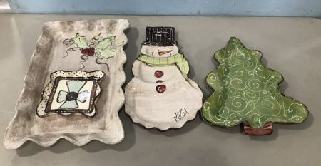 Four Christmas Pottery decor, tray, Santa Claus, Tree, dish. Four Christmas Pottery decor, tray, Santa Claus, Tree, dish.