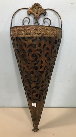 Modern Metal Hanging Flower Basket, rustic color, 30"h. Modern Metal Hanging Flower Basket, rustic color, 30"h.