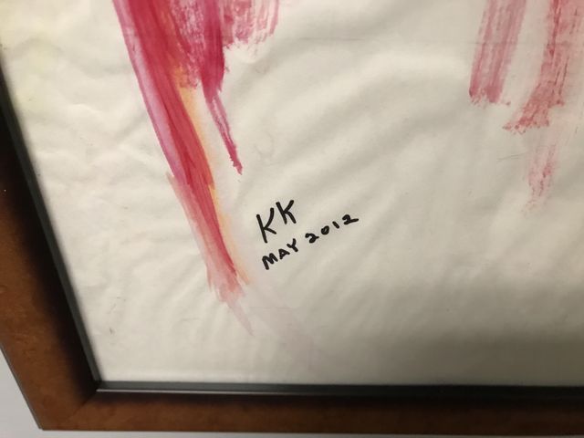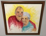 Couple Portrait Painting by KK 2012, on wrinkled paper, framed, 25"h., 26"w. Couple Portrait Painting by KK 2012, on wrinkled paper, framed, 25"h., 26"w.