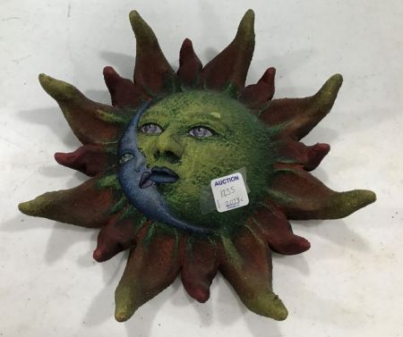 Decorative Hand made pottery sun, painted, signed on back, 11"dia. Decorative Hand made pottery sun, painted, signed on back, 11"dia.