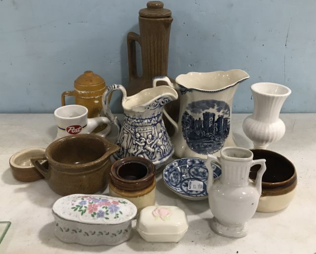 Group of Ceramic and Porcelain Pottery, pitchers, dishes, bowls, vase. Group of Ceramic and Porcelain Pottery, pitchers, dishes, bowls, vase.