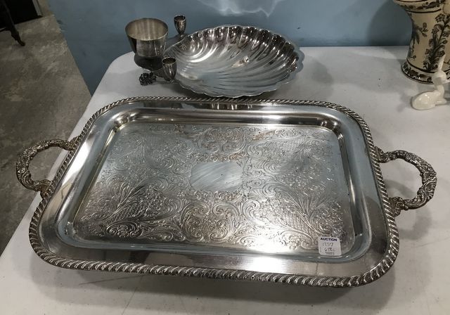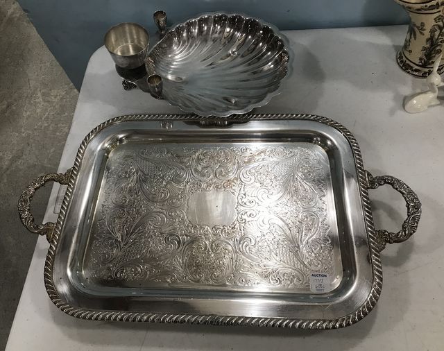 1257 Silver Plate Footed Tray and Silver Plate Shell Dish