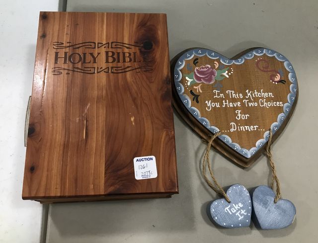 Oak Holy Bible Book Box and Hear Kitchen Decor Plaque. Oak Holy Bible Book Box and Hear Kitchen Decor Plaque.