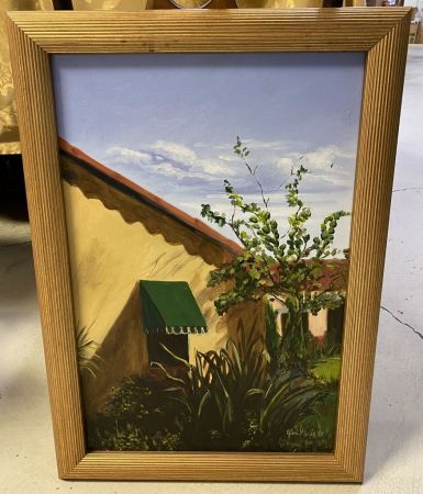 Lisa Paris Painting on Board, signed lower right, 2001, gold gilt frame is 27"h., 19"w. Jackson, MS Artist. Location Front Left Metal Shelves. Lisa Paris Painting on Board, signed lower right, 2001, gold gilt frame is 27"h., 19"w. Jackson, MS Artist. Location Front Left Metal Shelves.