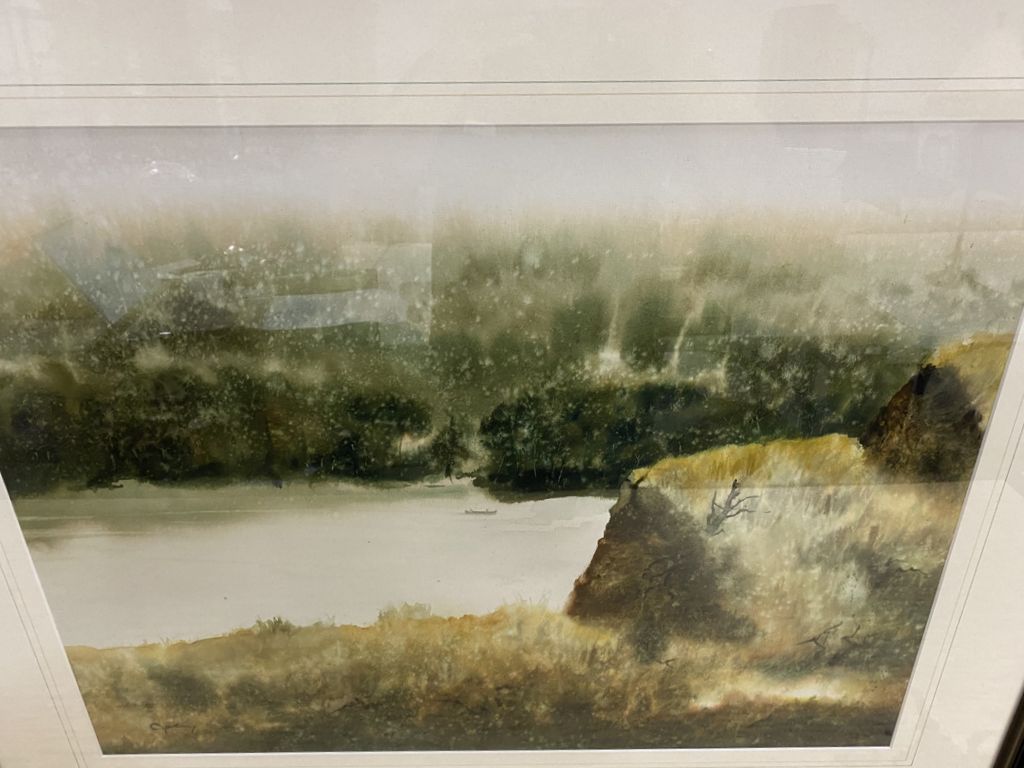 James Josey Landscape Watercolor, signed lower left, (American/Mississippi) Artist, frame is 32"h.,37"w. framed at Brown's Gallery. Location Front Left Glass Showcase. James Josey Landscape Watercolor, signed lower left, (American/Mississippi) Artist, frame is 32"h.,37"w. framed at Brown's Gallery. Location Front Left Glass Showcase.