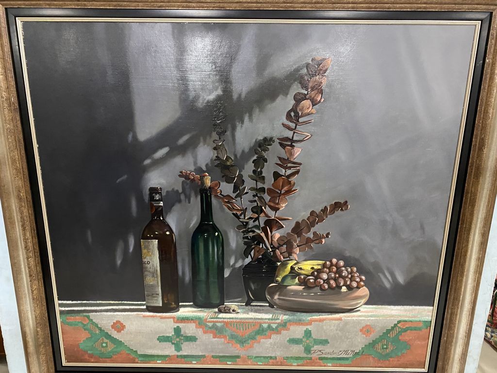 P. Sanders McNeal "Decanting the Wine" Still Life Painting, on board, Brown's Gallery Framed, signed lower right, frame is 40"h., 44"w. Greenwood, Mississippi, moved to Jackson 1962, Fine Arts Degree from Mississippi University of Women. Location Left Office. P. Sanders McNeal "Decanting the Wine" Still Life Painting, on board, Brown's Gallery Framed, signed lower right, frame is 40"h., 44"w. Greenwood, Mississippi, moved to Jackson 1962, Fine Arts Degree from Mississippi University of Women. Location Left Office.