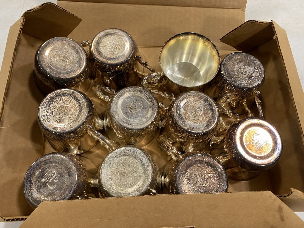 Sheridan Silver Plate Punch Bowl and Under Plate, bowl is 9"h. 18"dia. 11 punch cups. Location Back Metal Cases Sheridan Silver Plate Punch Bowl and Under Plate, bowl is 9"h. 18"dia. 11 punch cups. Location Back Metal Cases
