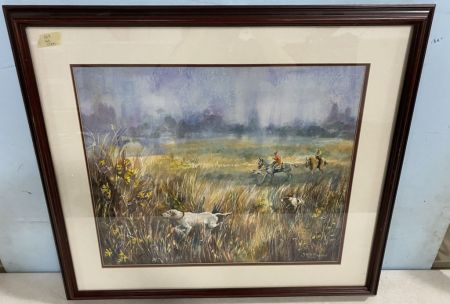 Sandra Williams "Field Trial" Watercolor, signed lower right, matted, framed, 32"h., 28"w. (1938-2000) Resident and Art in Jackson, MS. Location Left Office. Sandra Williams "Field Trial" Watercolor, signed lower right, matted, framed, 32"h., 28"w. (1938-2000) Resident and Art in Jackson, MS. Location Left Office.
