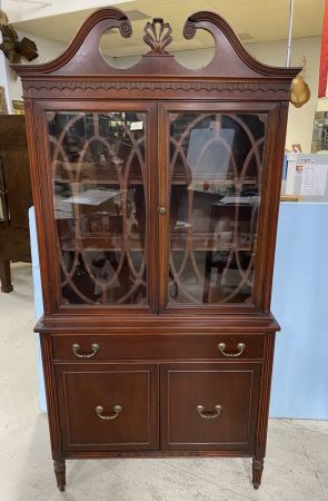 Bernhardt Furniture Co. China Cabinet, two shelves, mahogany, drawers, good condition, 76"h., 38'w., 15"d. Location 4th Row Bernhardt Furniture Co. China Cabinet, two shelves, mahogany, drawers, good condition, 76"h., 38'w., 15"d. Location 4th Row